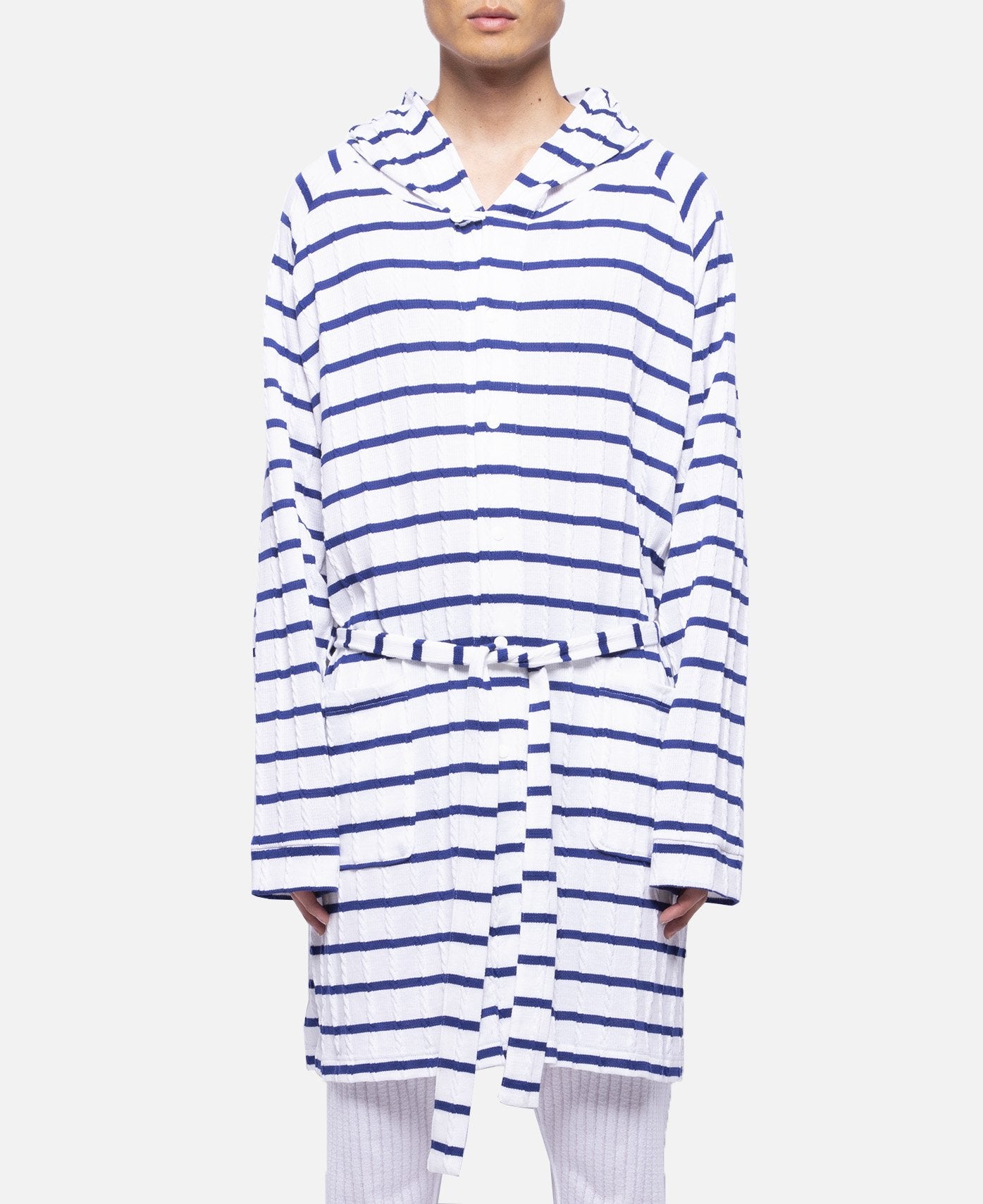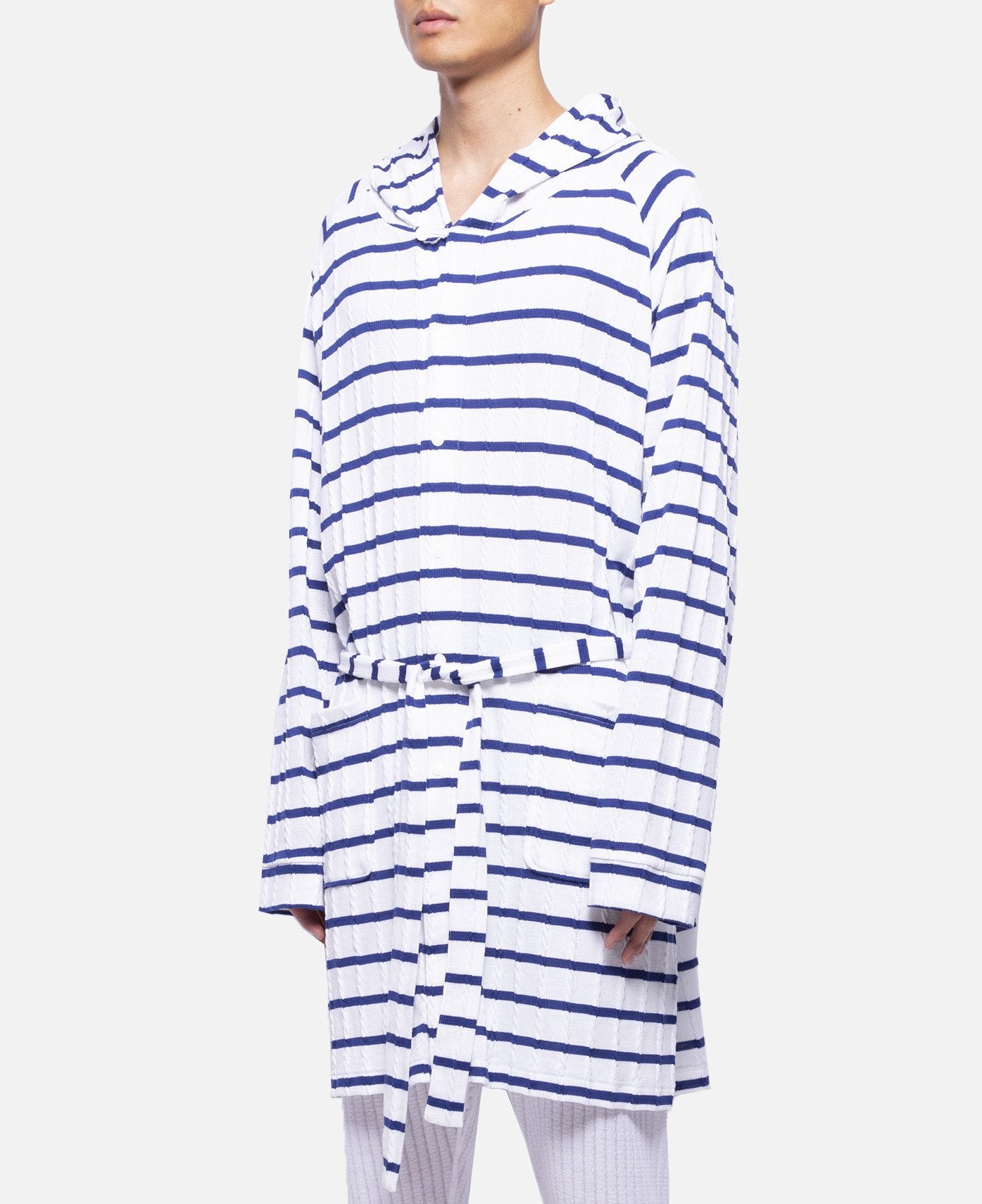 Cable Border Bath Robe (White)